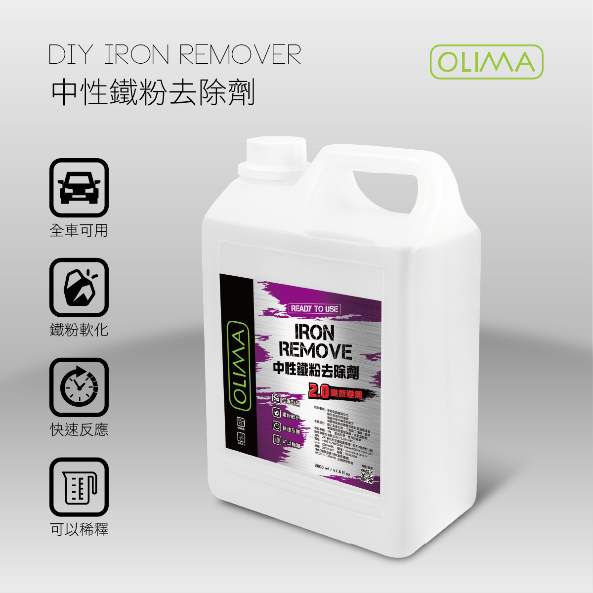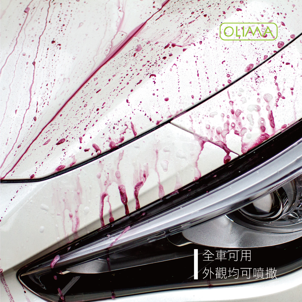 注意事項:噴灑後勿放置太久到鐵粉劑乾掉(分解出來的紫色鐵粉如果完全乾掉於漆面會留痕跡,這時請用OLIMA清潔蠟去除即可)
