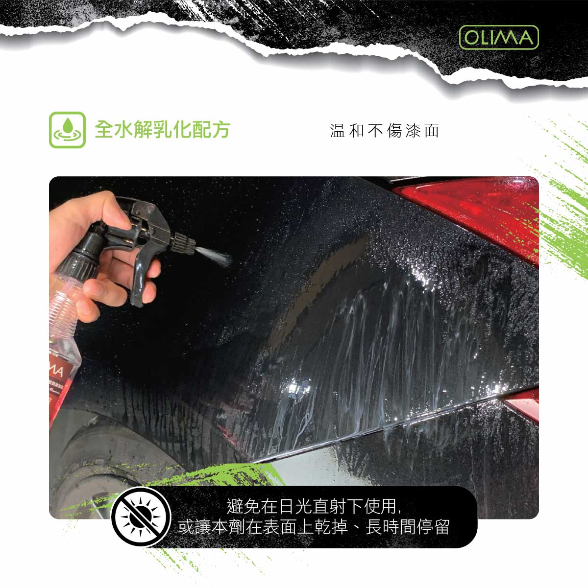.表面微濕&乾時皆可使用, 車身微髒時亦可無水直接搭配OLIMA纖維布擦拭