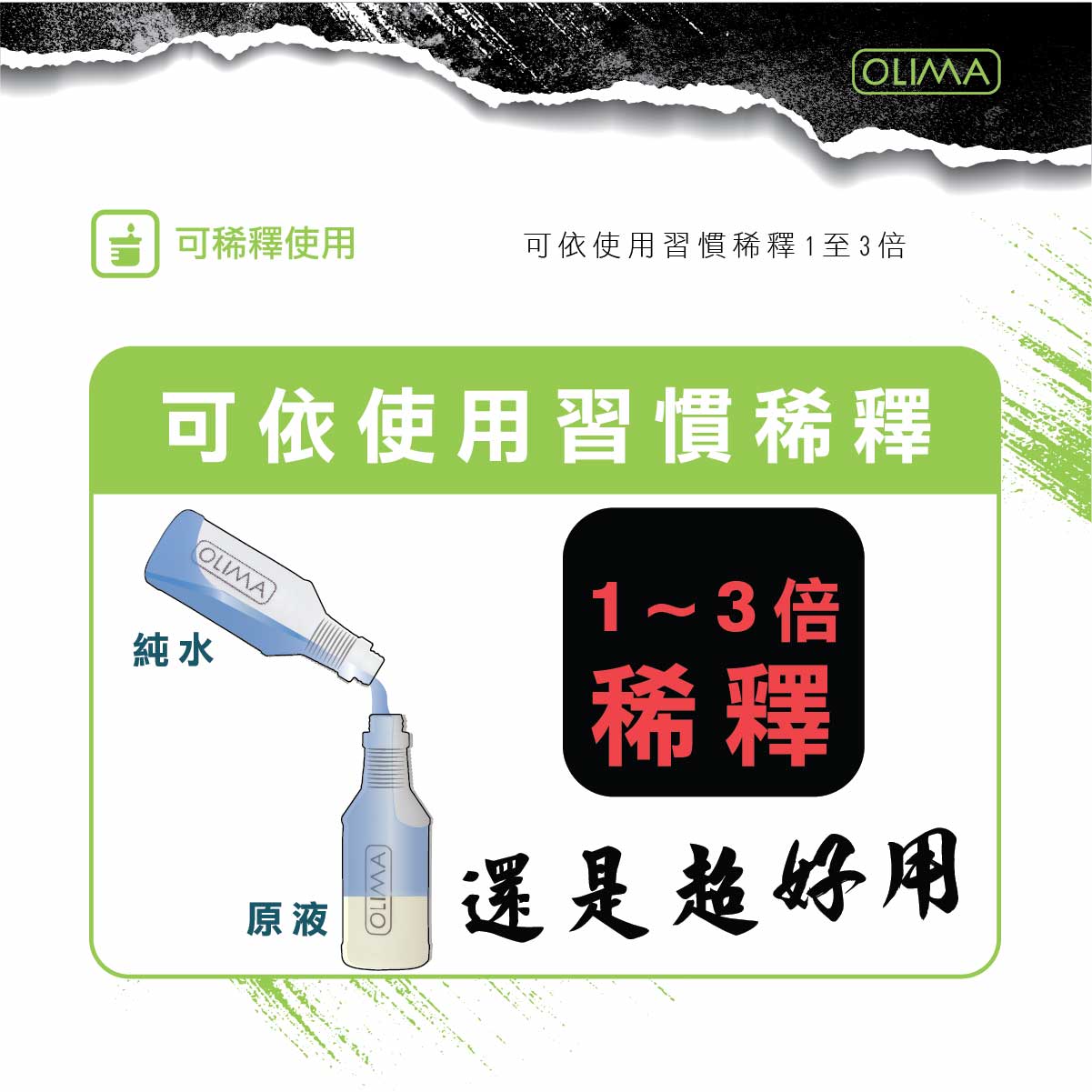 .原液出貨,可依照使用習慣稀釋1~5倍(務必稀釋再使用)